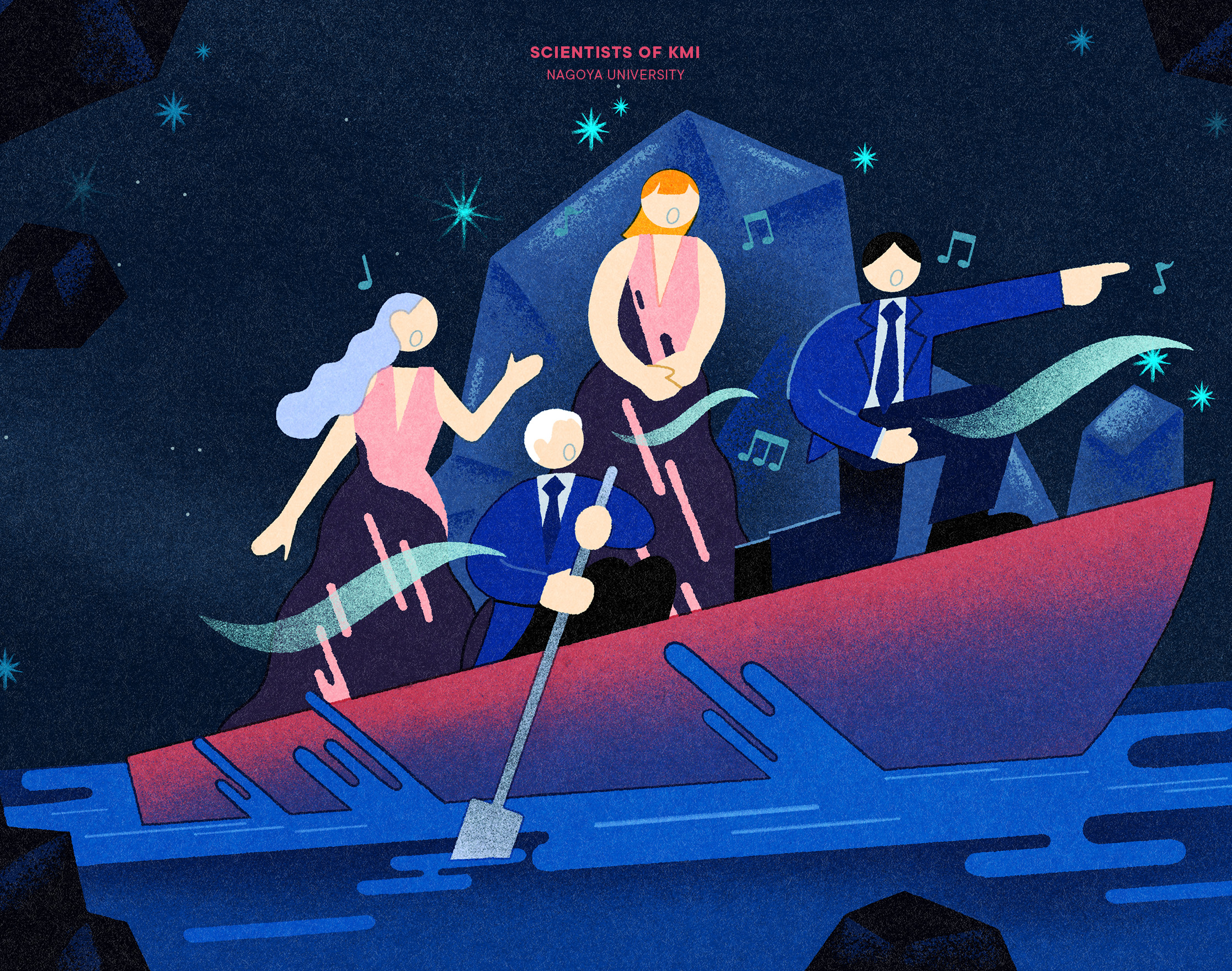 名古屋大学 素粒子宇宙起源研究所〝SCIENTISTS OF KMI〟のエッセイ「暗黒物質と合唱」の挿絵を担当しました。